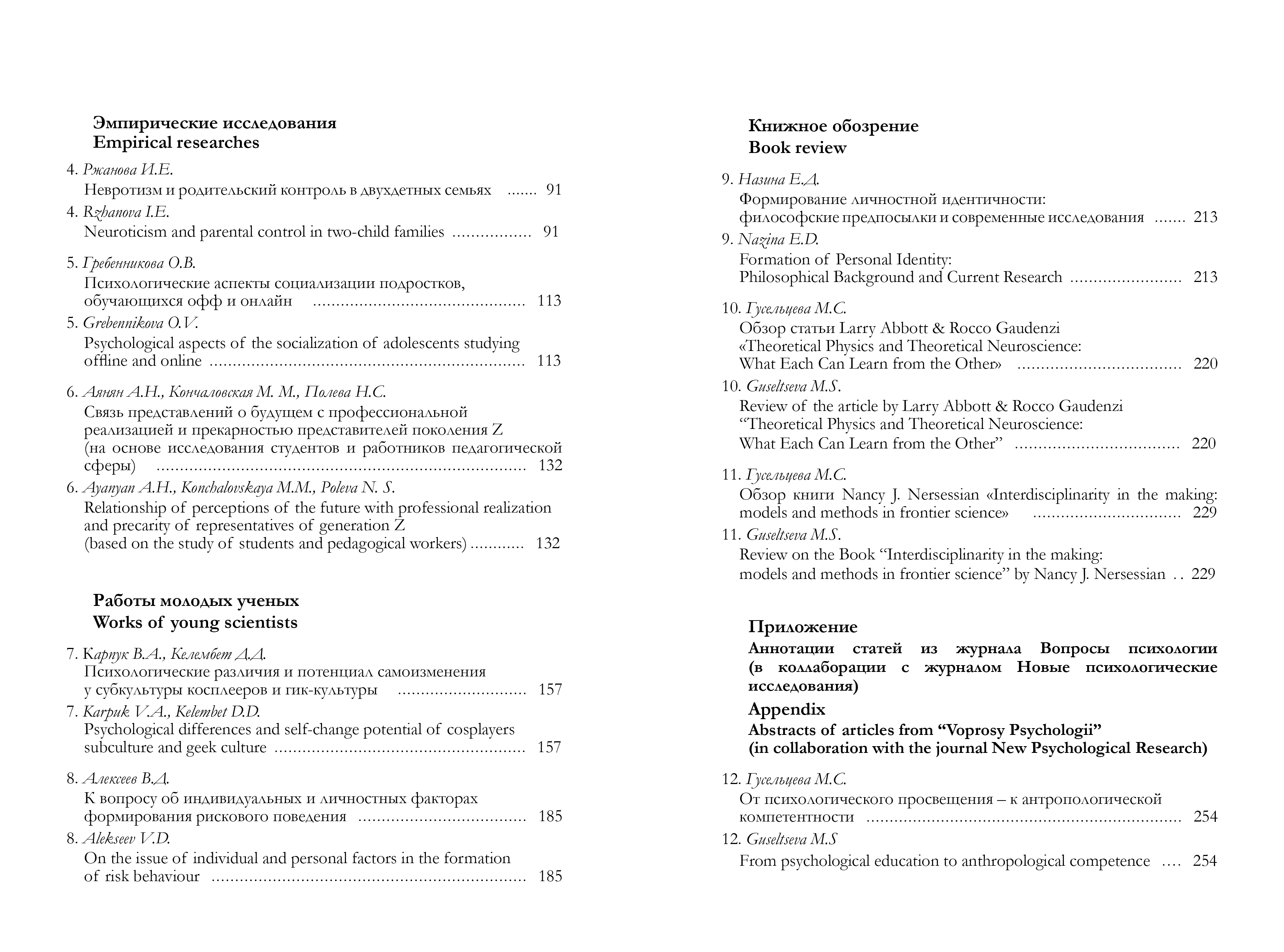 Статья О.В. Гребенниковой «Психологические аспекты социализации подростков, обучающихся офф и онлайн» посвящена изучению самоконтроля общения, уровня осознанности и толерантности к неопределенности как показателей социализации подростков, обучающихся офф и онлайн. Результаты показали, что в процессе социализации формат обучения влияет на самоконтроль в общении, осознанность и толерантность к неопределенности, а межличностная интолерантность к неопределенности не обусловлена офф и онлайн-обучением.