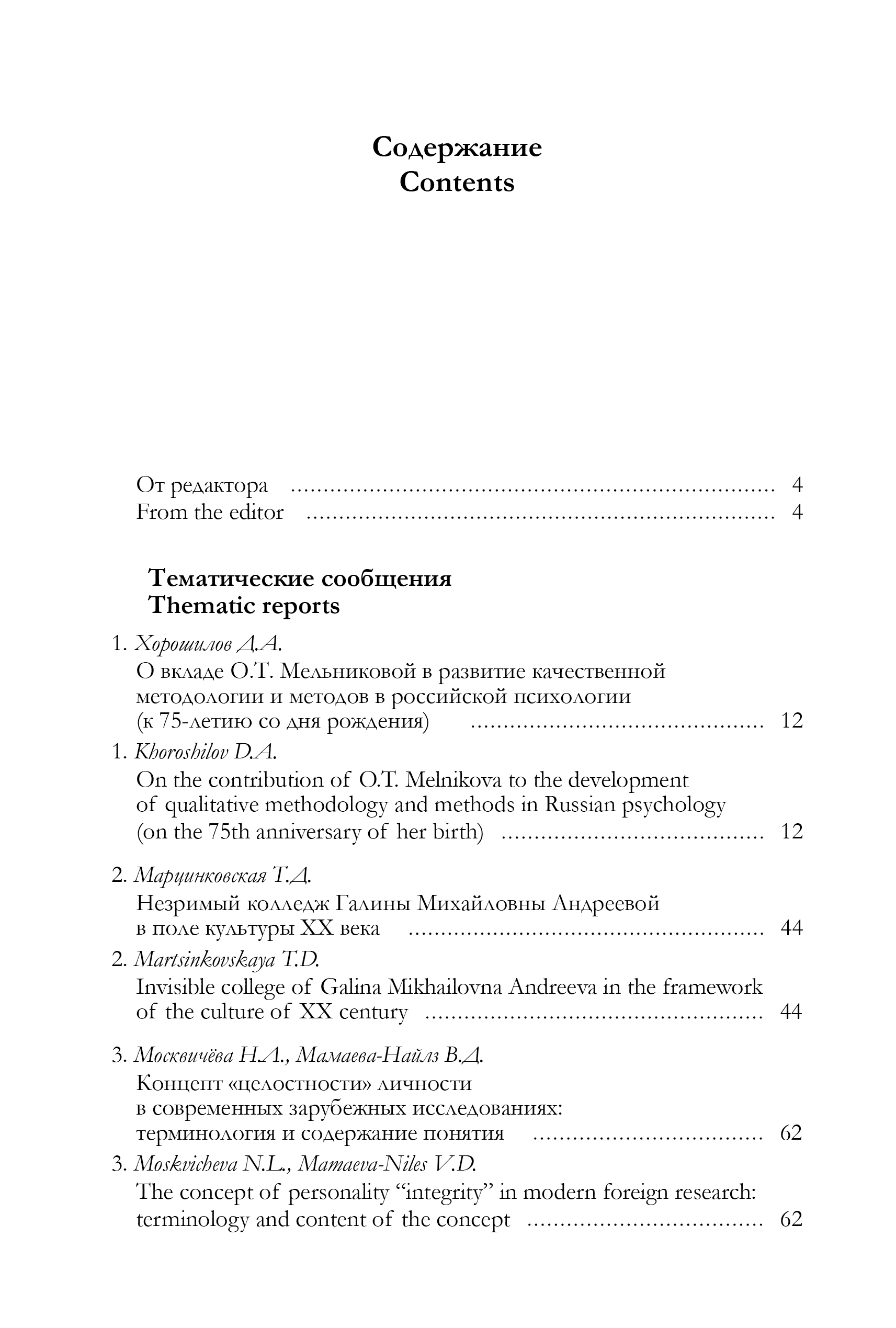 В статье Н.Л. Москвичёвой и В.Д. Мамаевой-Найлз «Концепт “целостности” личности в современных зарубежных исследованиях: терминология и содержание понятия» представлен обзор современных зарубежных подходов к пониманию целостности личности. Дается сравнительное описание англоязычного терминологического поля для сопоставления полученных результатов с русскоязычным научным дискурсом. Результаты обзора показывают, что по объему лексического значения русскоязычное понимание «целостности» не совпадает полностью ни с одним англоязычным термином. Проведенное исследование позволяет сделать выводы об актуализации интереса к феномену целостности личности как ее сущностной характеристике и как к принципу исследования личности.